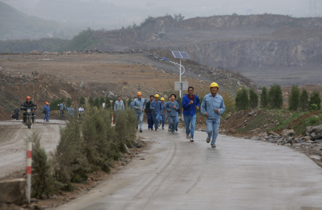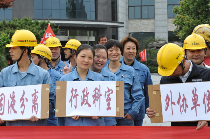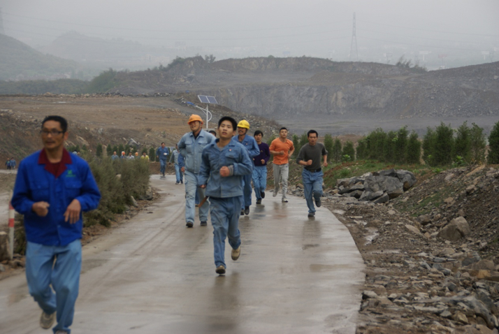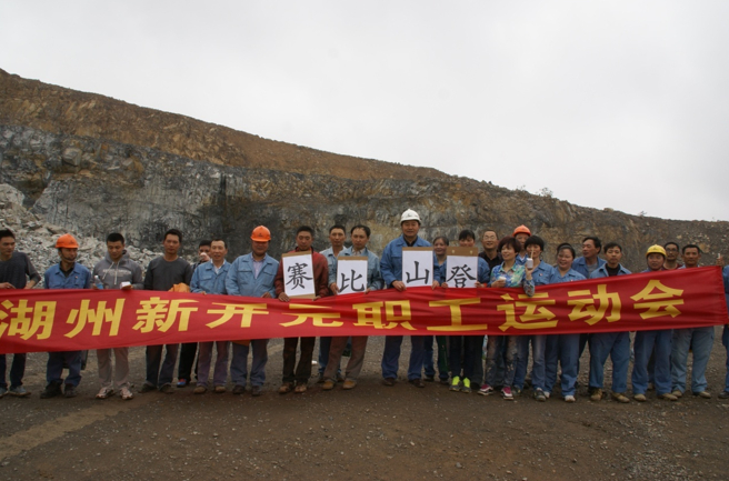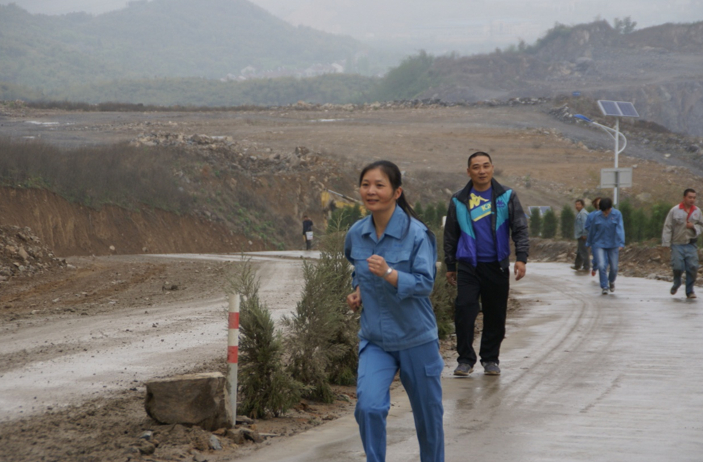 4月13日上午,參加公司登山運動比賽的隊員在辦公大樓前集合。9:30分,隨著工會主席一聲比賽令下,30多名隊員如潮水般涌向比賽跑道。